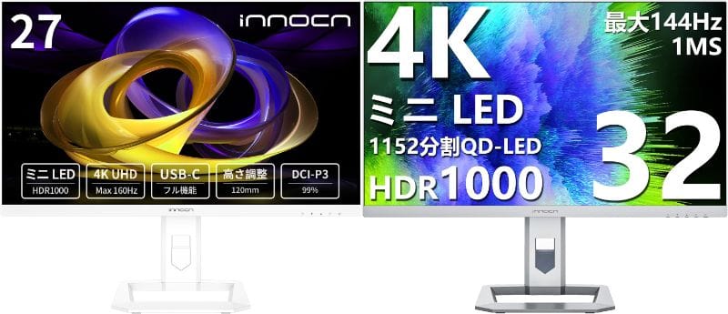 INNOCN 27M2V Lite/32M2V|激安ミニLED HDR1000モニター
