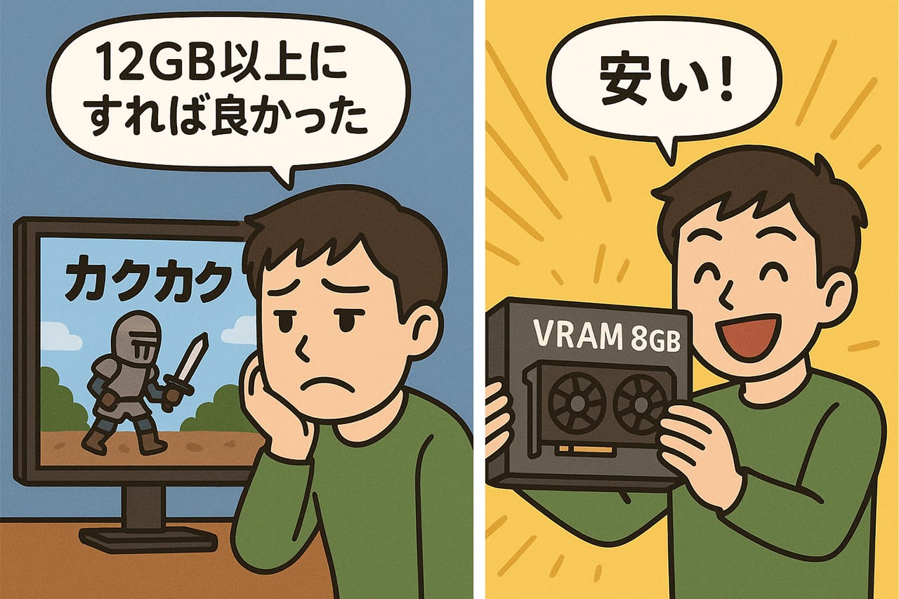 心配な人はRTX 5060 Ti 16GB、またはRTX 5070を選んでください。