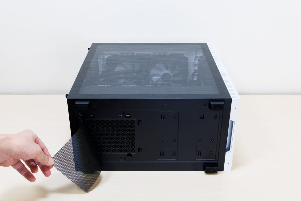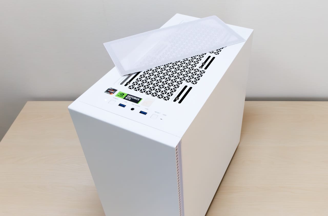 ↑天面に大きな通気口があって、ホコリの侵入を防ぐマグネット式のフィルターを装備。