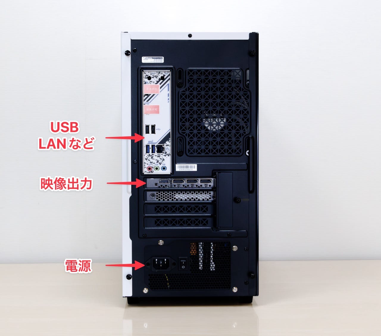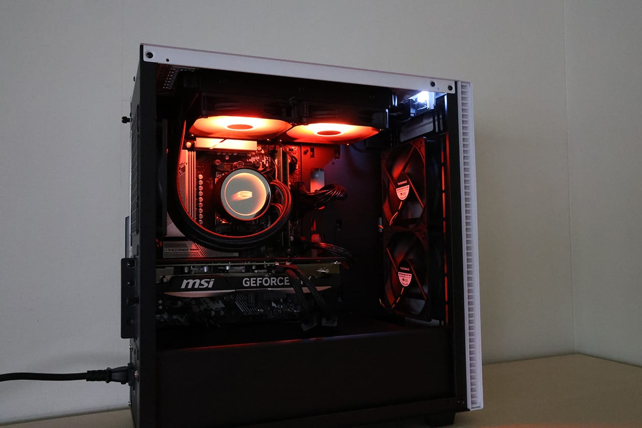 ファンの数は「前方x2、天面x2、後方x1」で合計5個になります。