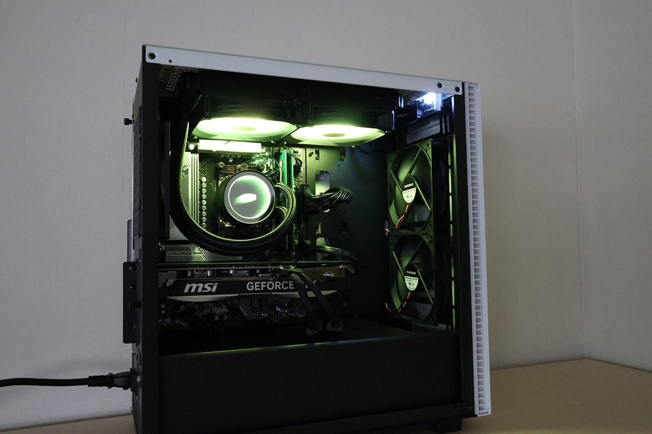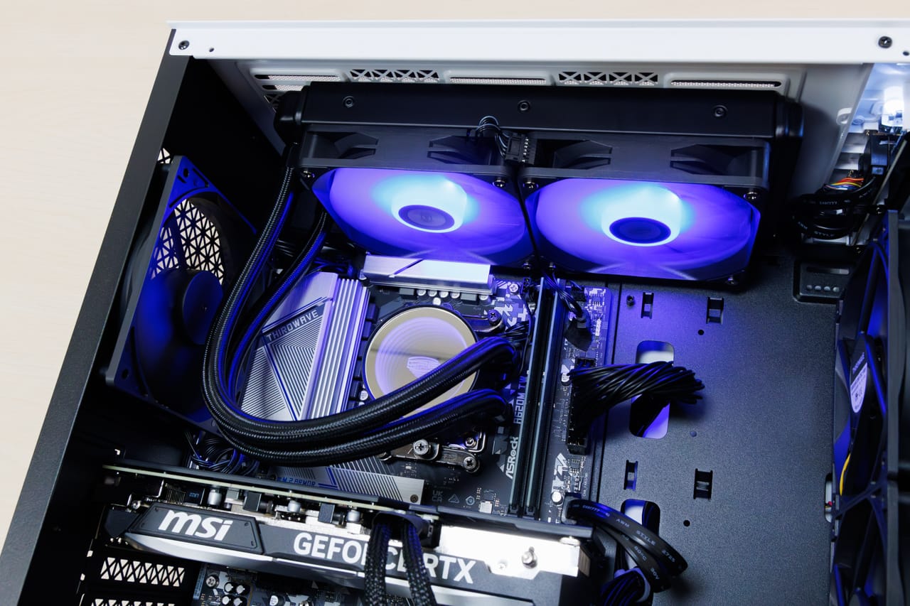 ↑CPUクーラーは240mmの簡易水冷を標準搭載。