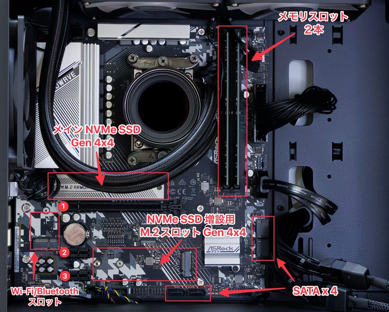 NVMe SSDを増設するための空きM.2スロットも1つあるので、将来的に容量不足になることは無いでしょう。