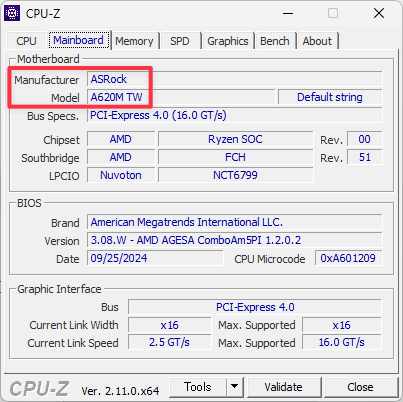 ↑試用機のマザーボードは「ASRock A620M TW」でした。