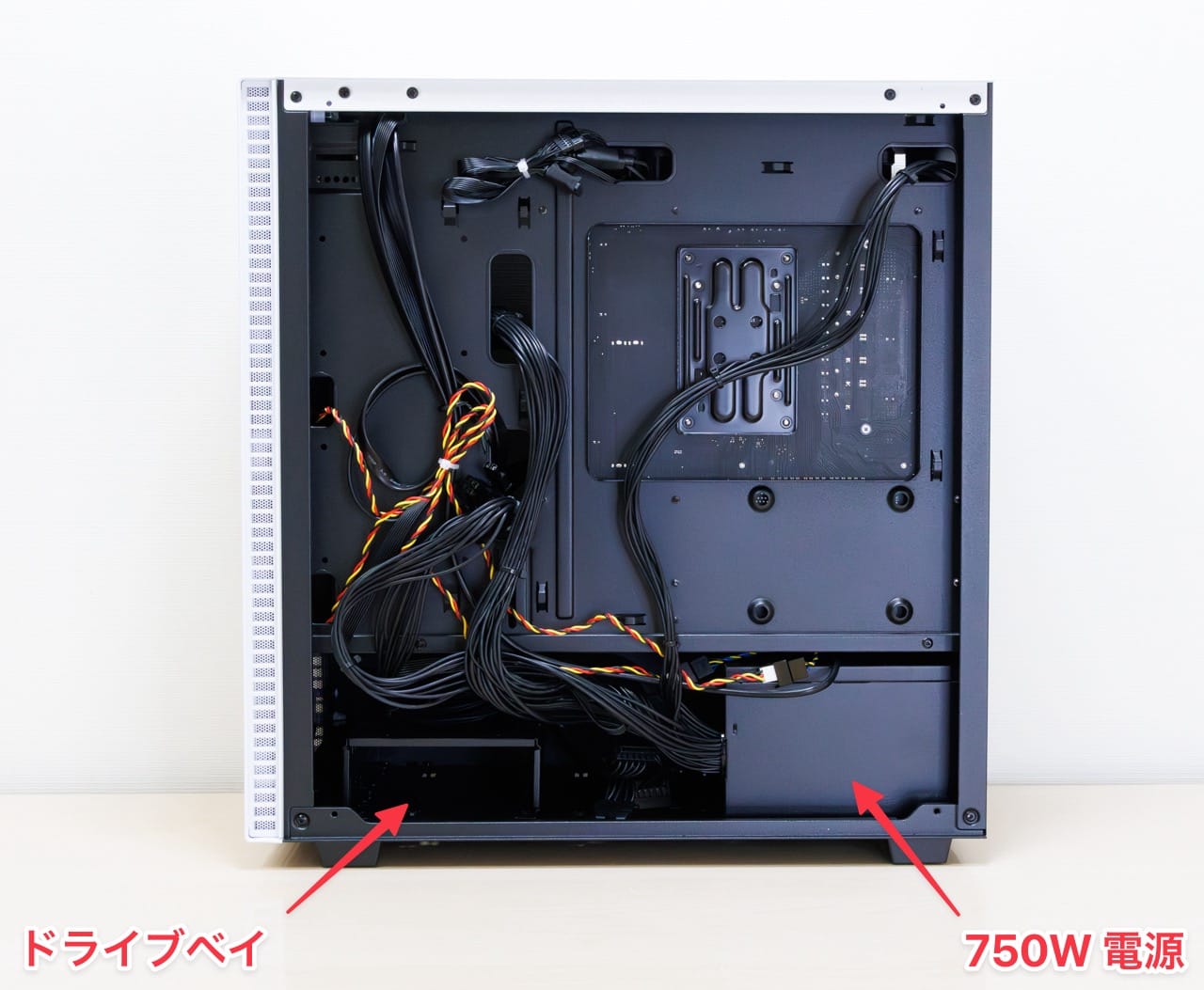 電源ユニットは750W 80PLUS GOLDで、RTX 4080 SUPERクラスのハイエンドGPU+ストレージを2〜3台くらい追加できる十分な容量です。