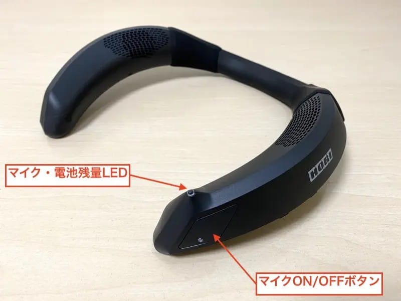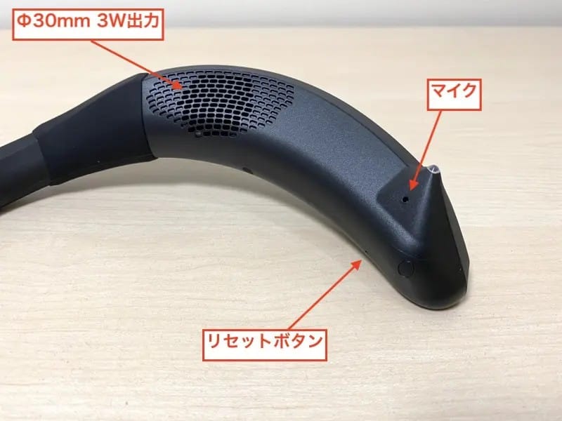 妙な突起物の先っぽにマイクと電池残量のステータスLEDがあります。