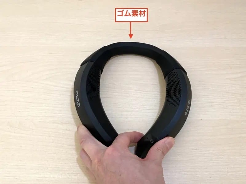 首の後ろ側にあたる素材はラバー製になっていて、かなり曲げられます。