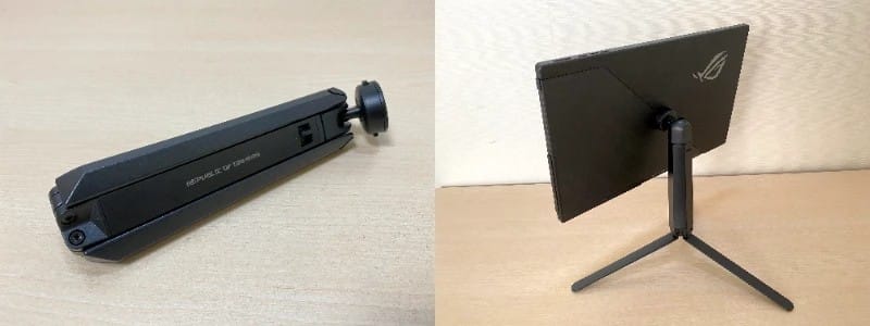 XG16シリーズにはROGの刻印が入った専用三脚付きの「XG16AHP」というモデルがあります。