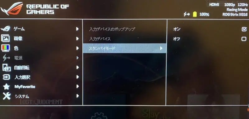 普通はマウスやキーボード操作で画面復旧しますが、XG16AHPEに「充電ケーブルを挿した状態(常時給電)」だとデフォルトではスリープ解除が自動でできません。