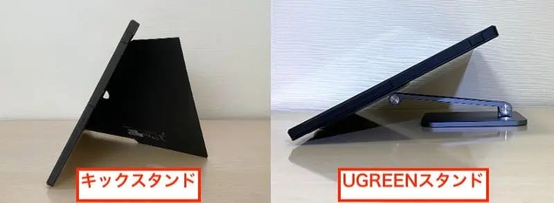 XG16AHPEのキックスタンドは便利ですが、低く寝かすように設置したいと思うことがありました。