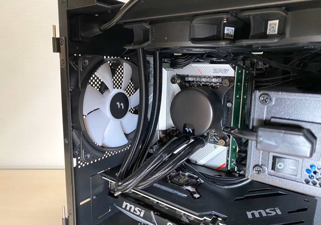 240mmクーラーの場合、製品によってチューブが後方の排気ファンに接触すると思います。
