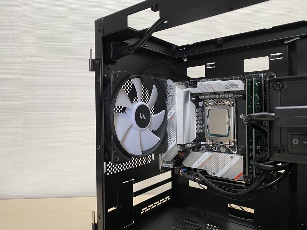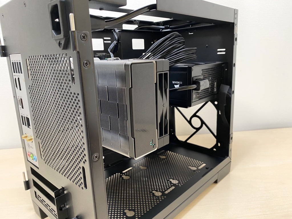 もっと小さいMini-ITXケースだと背の低いCPUクーラーを探す必要があって、その点でもこのケースはパーツ選びが楽ちんです。