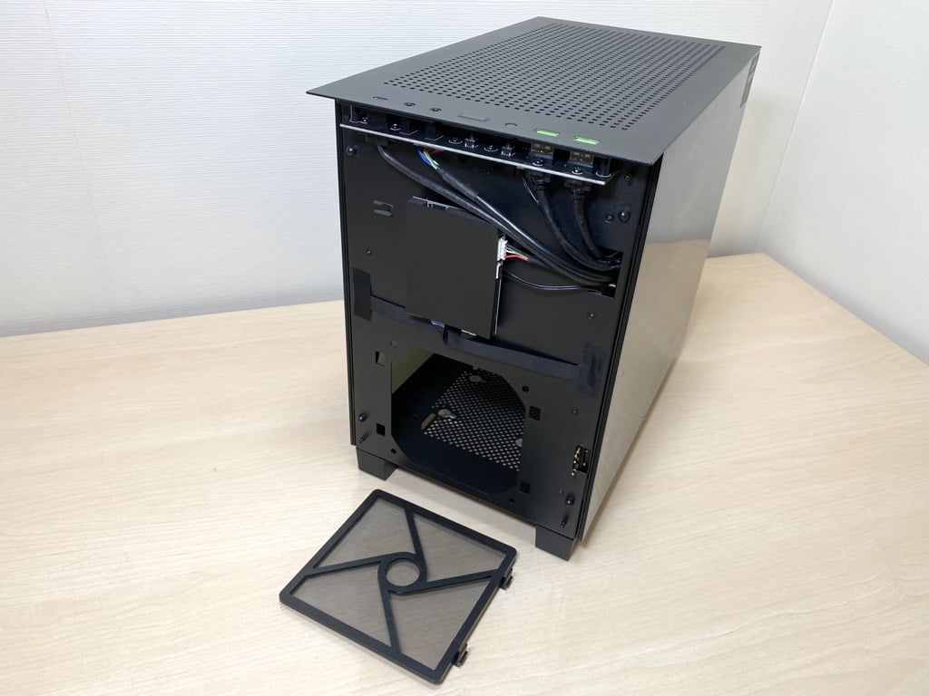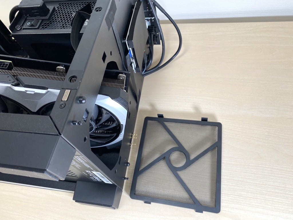 フロントのダストフィルター部分にファンを取り付けできるスペースができます。