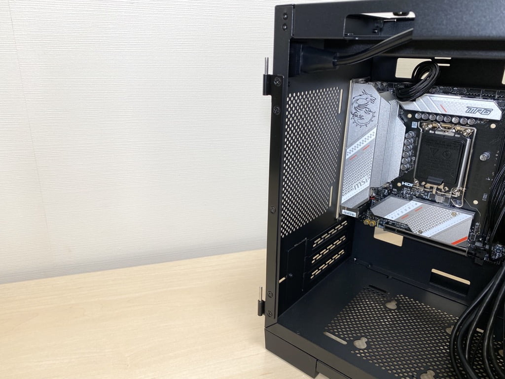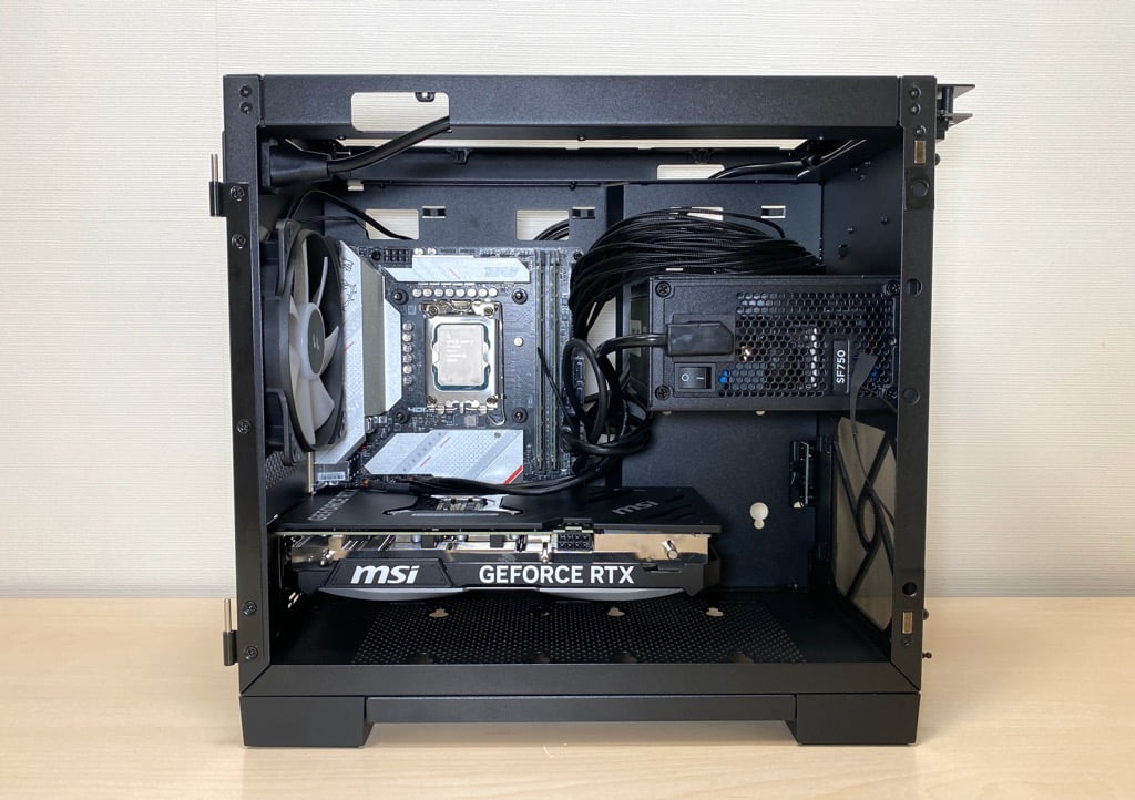 他のMini-ITXケースだと、グラボをガンガンぶつけながらケース内に入れるものが多いので非常に楽ちんです。