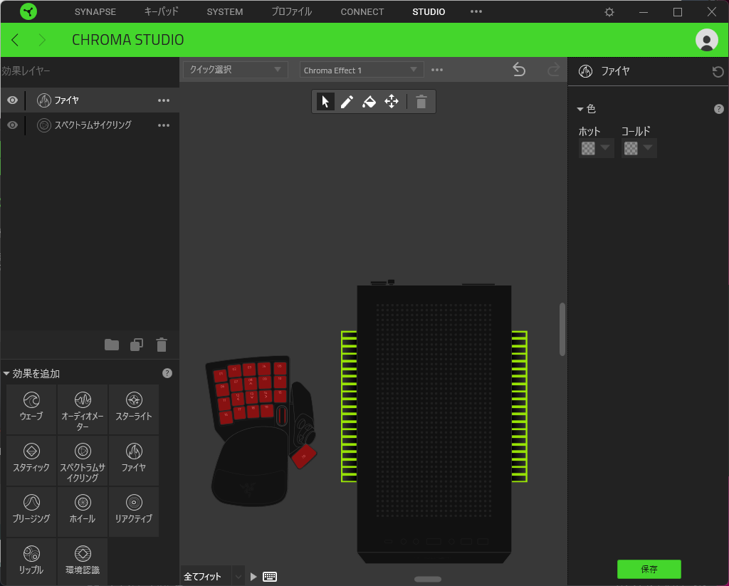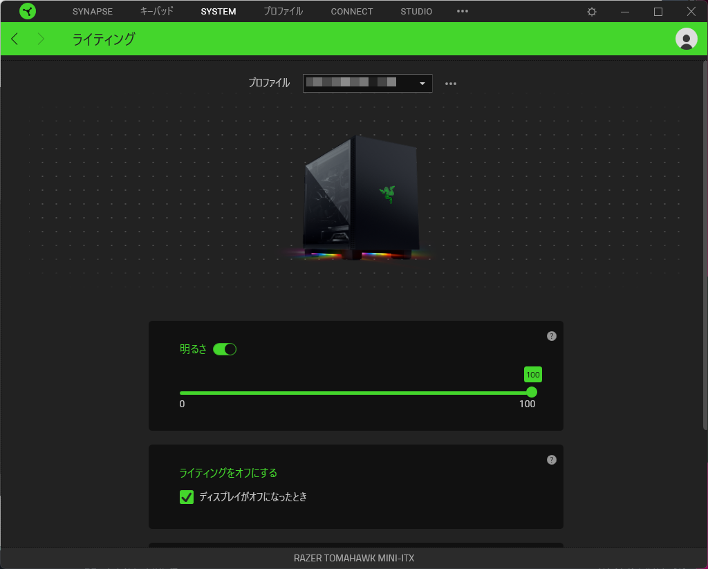 RAZER純正アプリの「SYNAPSE」でライティングの設定ができます。
